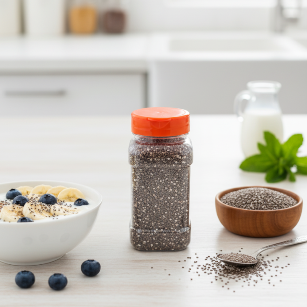 تُضاف إلى العصائر، الزبادي، السلطات أو المخبوزات. يمكن نقعها بالماء أو الحليب لتكوين قوام جِل صحي ولذيذ.